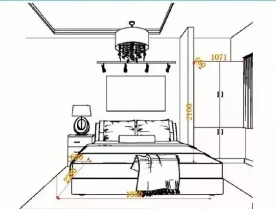 可以選擇床頭臺燈,直接放到床頭柜上就OK,如果是吊燈,一定要在床尾下方10cm以外。