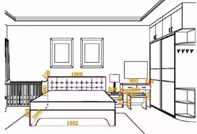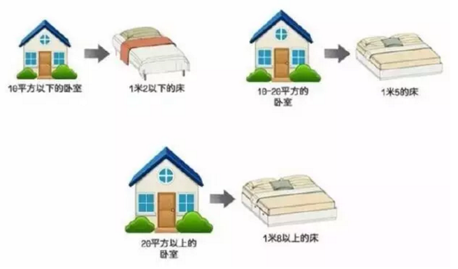 10平方米的臥室配1.2m一下的床,10平方米至20平方米配1.5m的床,20平方米以上的臥室需要配1.8m以上的床。