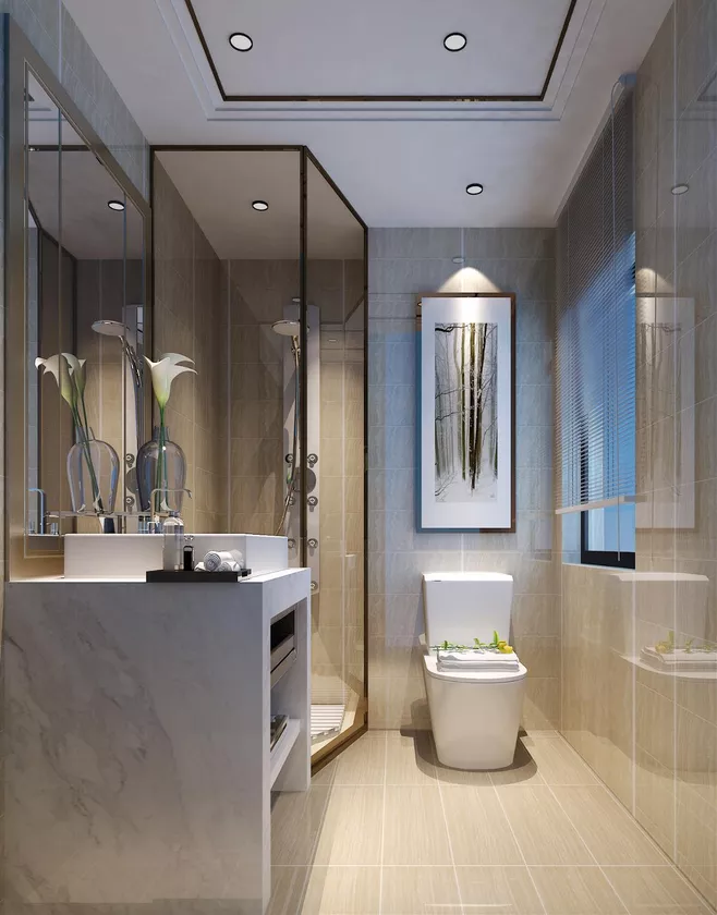 1、衛(wèi)生間一定要進(jìn)行干濕分離,空間小做淋浴房麻煩的話,用浴簾簡單分隔。