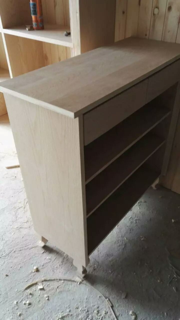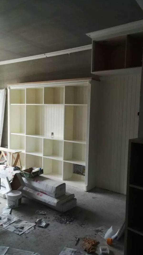 特地讓木工師傅幫我做幾個(gè)柜子,客廳的大書(shū)柜、鞋柜和頂?shù)豕,還有一個(gè)餐邊柜,板材都是設(shè)計(jì)師推薦的,很不錯(cuò),木工師傅的手工也很贊,完全做出了我想要的樣子。