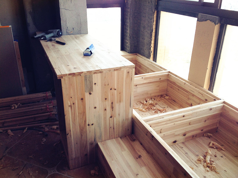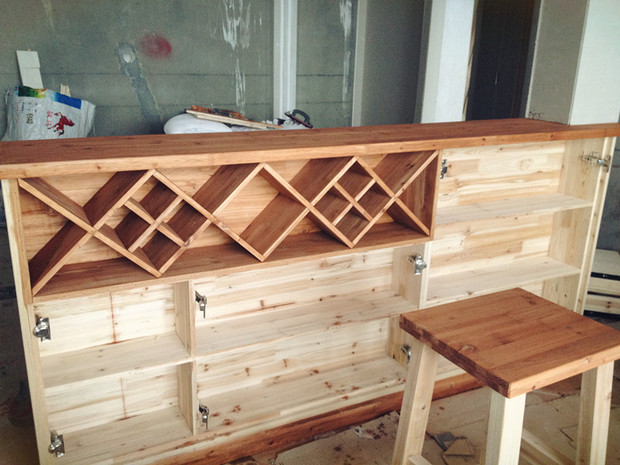 重頭戲還是從泥水開(kāi)始的,泥水階段非常順利,從7月15日—7月24日,工人師傅一天也沒(méi)停,浩浩蕩蕩的就把我家瓷磚給貼好了,而且手藝很不錯(cuò),很多參觀的人進(jìn)來(lái)都說(shuō)貼的贊。我們家的衣柜、榻榻米、書柜什么的全是手工打造了,不得不說(shuō)木工師傅的收益杠杠的,超級(jí)厲害!